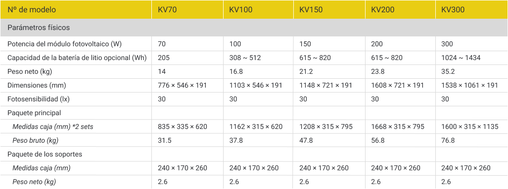 Las farolas solares de la serie KV son un producto innovador basado en un diseño supertecnológico. Se componen de un panel solar de doble cara combinado con vidrio templado y tencología TPT transparente, una batería y un controlador integrados y luces LED de alta eficacia. Asimismo, presentan un mayor rendimiento energético que las farolas convencionales. La serie KV no solo dispone de un diseño único, sino que además es muy fácil de instalar, mantener y transportar, por lo que es sin duda la solución perfecta para una iluminación sin conexión a la red.